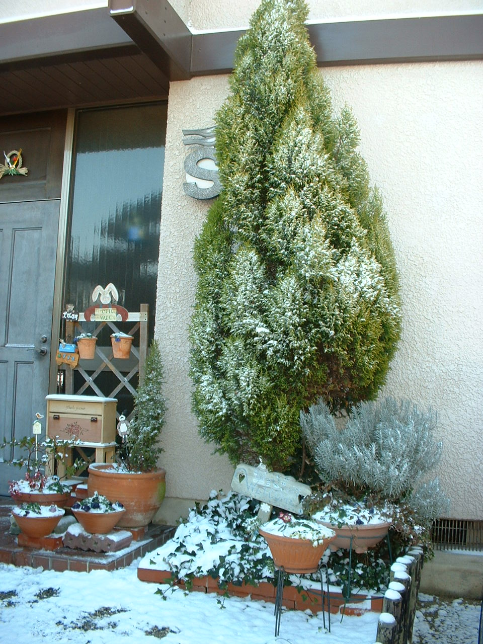 この冬初めての積雪、去年は3日だったから2日遅れです。ニュースで”積もる”と言っていたが