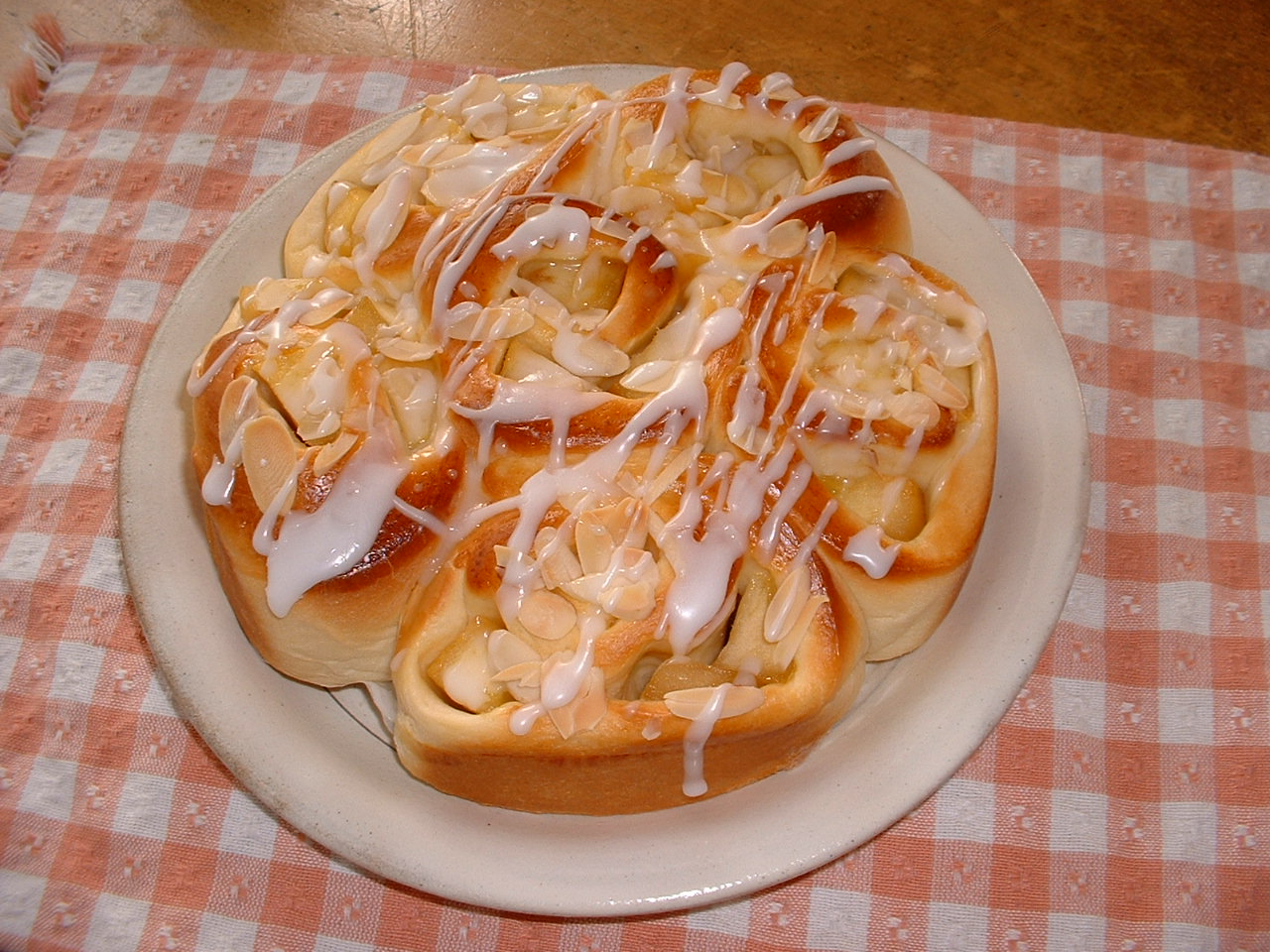 それなりににぎやかだ。ケーキは市販の物を購入したがパンはりんごパンを焼いてみた、甘煮したりんごをロールパンの生地で巻いて