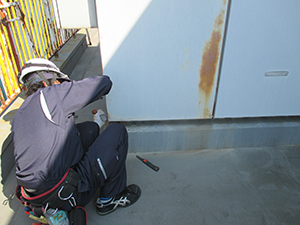 新キュービクル据付中 新キュービクルレベル出し 据付後コーキング処理