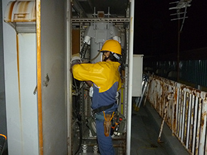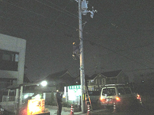 高圧端末作成中 耐圧試験中 低圧幹線接続中