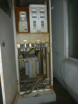 工事前キュービクル 電力メーター撤去中 高圧機器撤去中