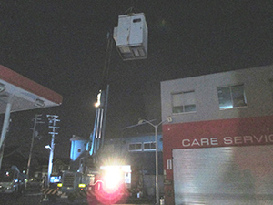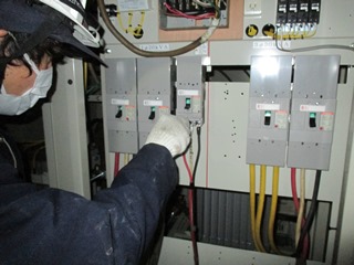 PCB混入Tr コンデンサ キュービクル吊り上げ作業中 低圧幹線接続中