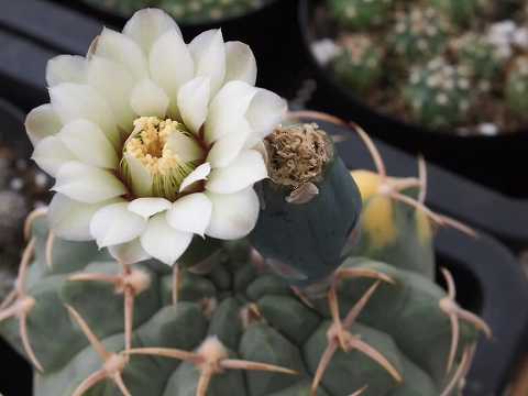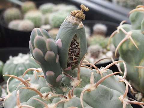 B 2012/05/22 約1ヶ月後、中心部の刺が成長しました(1本折れた) |