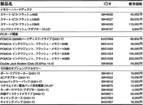 ※7 モデル2431-YDWはPCカード Type IIIのハードディスクにWindowsを初期導入しているので、Windows使用時に他のPCカードは利用できません。LAN、ホストコネクトはサポートしません。