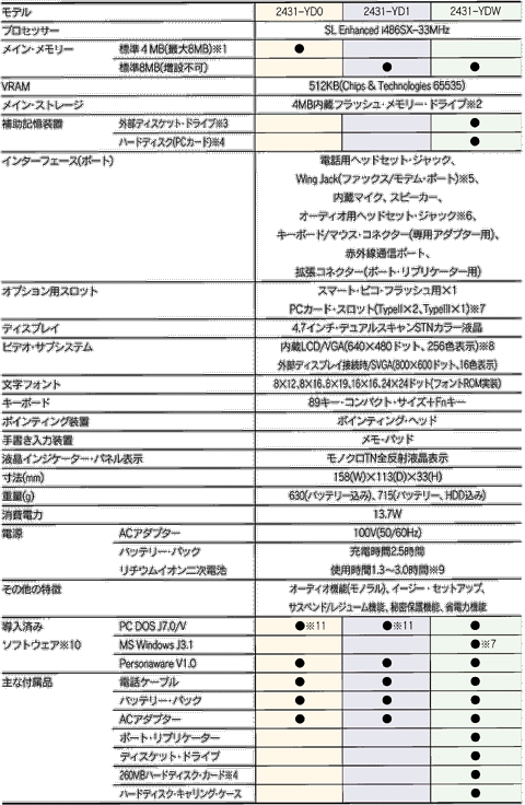 ※4 タイプIIIのPCカードで、DOS J7.0/V、MS Windows J3.1を初期導入済み。