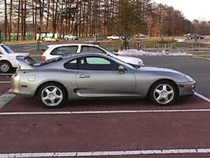 トヨタのスポーツカー、スープラ。 3リッターのターボエンジン搭載で、すごい加速力です。 4人乗りなのですが後部座席が小さいのでほとんど2人乗り、 トランクも小さいので荷物もあまり載らず・・・実用性の無い車です。 でもかっこいい!?普段は長男が使っています。 トヨタ純正のカーナビとCDチェンジャーが付いています。 |