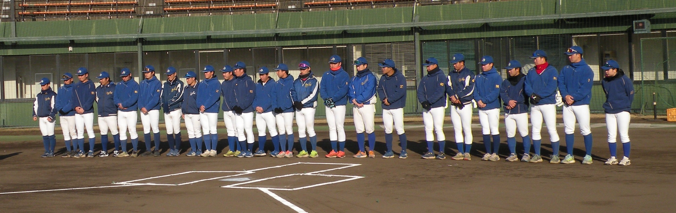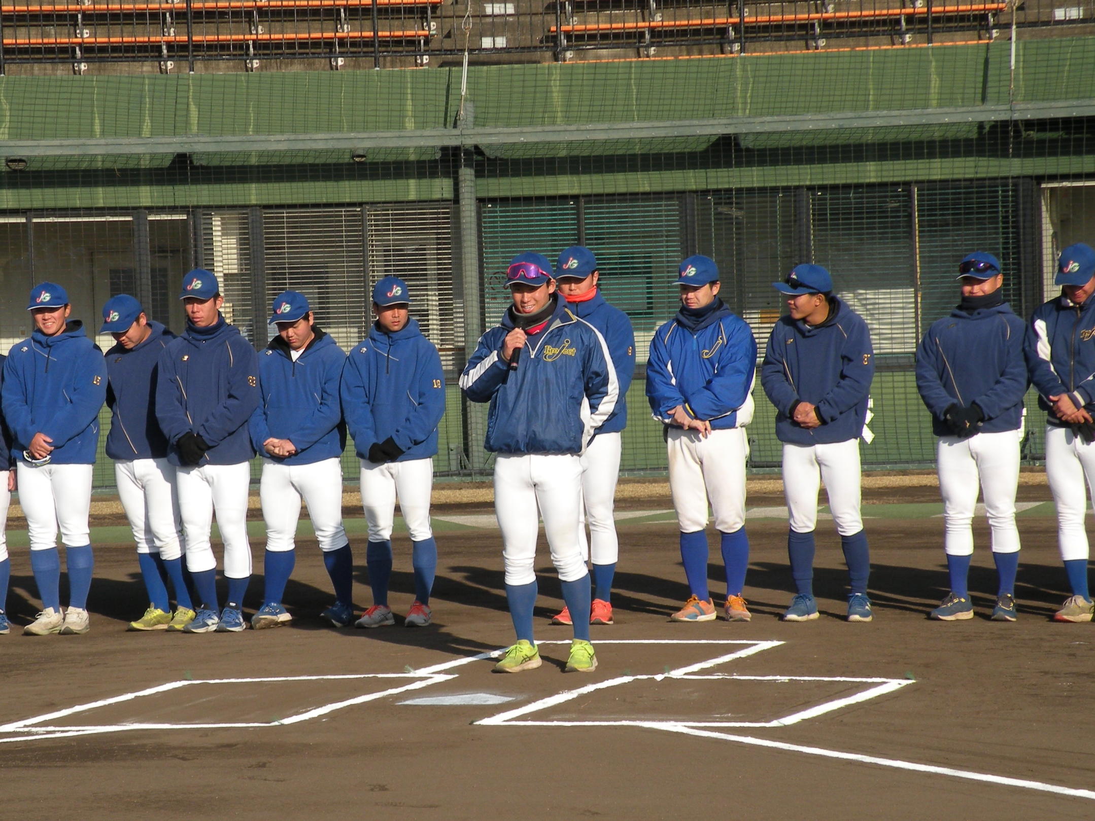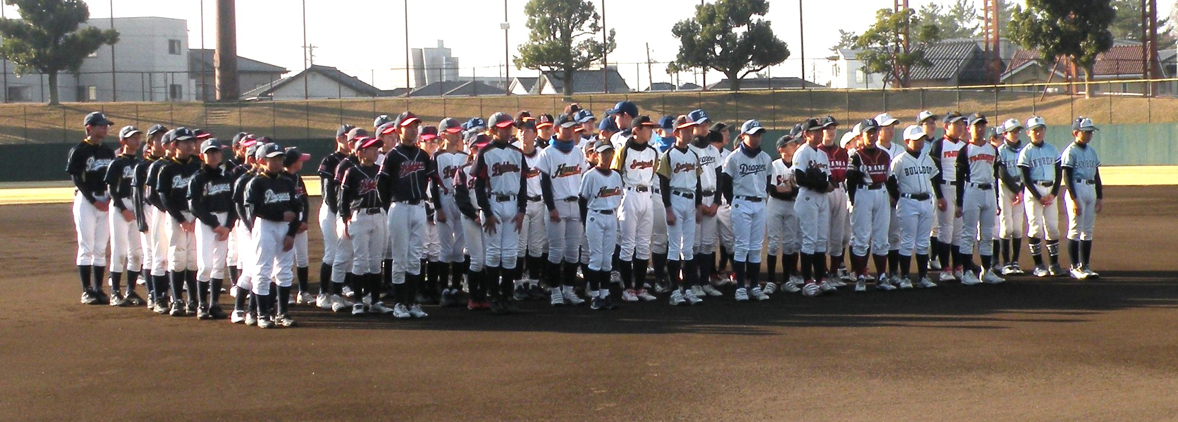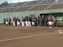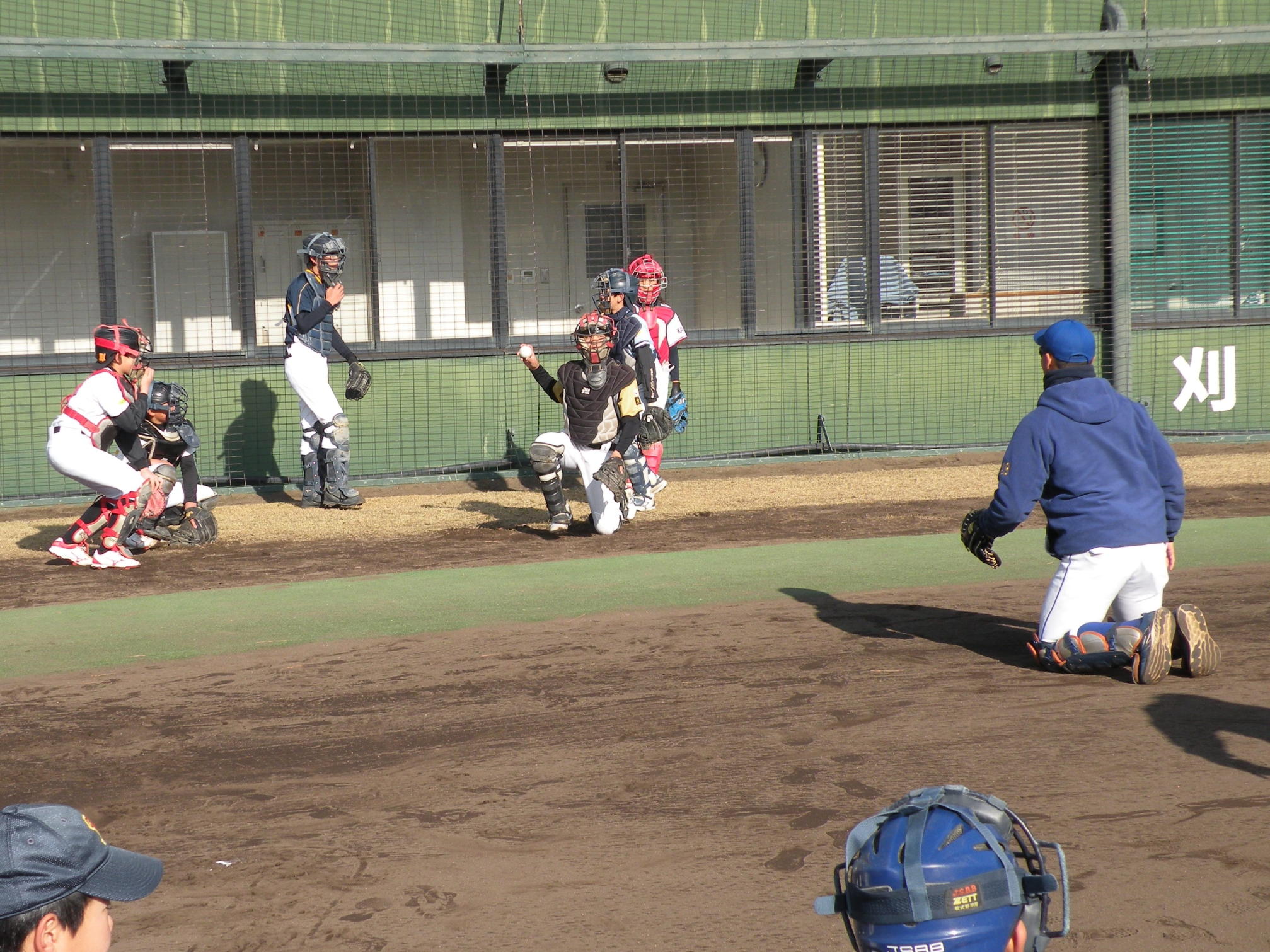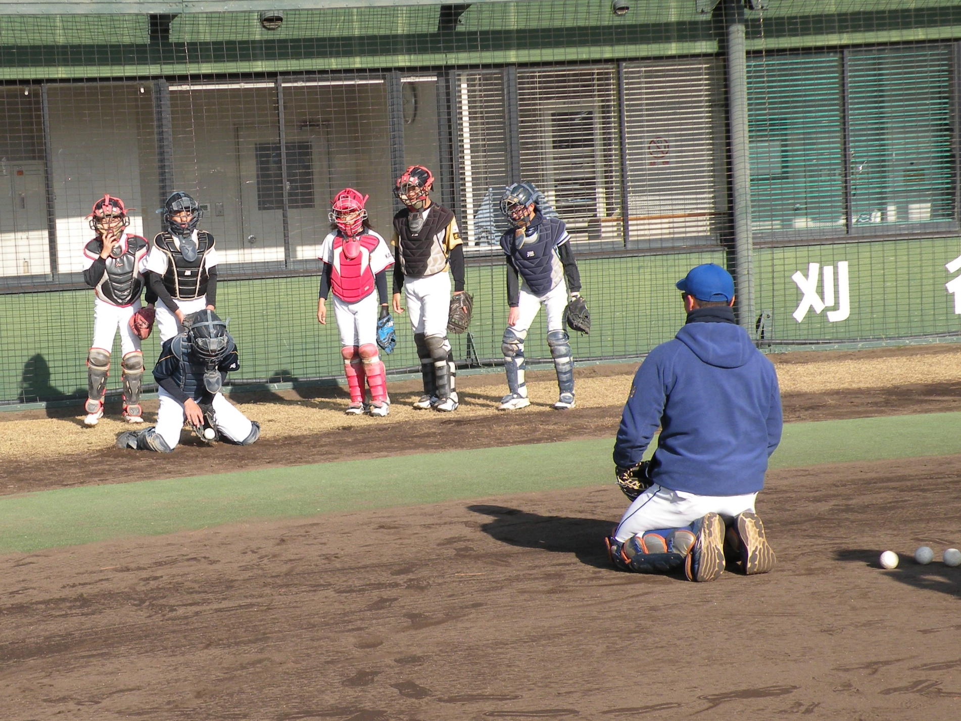 ことしは、野球日和?の中、刈谷球場で、Jプロジェクト硬式野球部による野球教室が行われました。 9時より野球教室開校式を行い、その後3グループ(投手・捕手のバッテリーグループ 内野守備グループ 外野守備グループ)にそれぞれ指導者とともに分かれ、準備体操、投球、捕球、内野守備、 外野守備、打撃及び走塁練習を、11時迄まで行われました。 最後に、グループ別に分かれ(6チーム)て、ティーバッティングゲームで盛り上がりました。 参加したのは、刈谷市の少年野球11団体の6年生約80人です。 指導してくれたのは、ジェイプロジェクト硬式野球部(社会人野球)の選手約25人です。 短い時間で有ったけど、子供たちは元気に楽しく、選手と和気あいあいで、貴重な時間であったと思います。 |