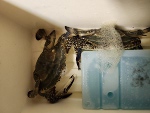 構わず投げ込むが100%ハゼドン(+o+) 運送屋さんが欲しいと言うのでセッセとキープ。チビ蟹がウロウロし始めたと思ったら、親が大挙して現れた。運送屋さんと若い衆がウハウハと掬いだす。σ(^^)はトットとお片付けして移動。次は亜希子場へ。ここもチョイ濁だがまだマシなので開始。釣れて来るのはアカチンのみ。すると「何で居る〜?」と相談役登場!