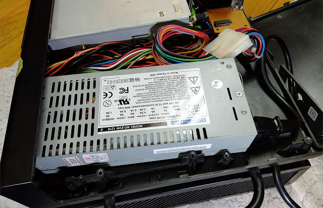 picopsuも用意したけど固定方法で悩み、メンドクサかったから昔ジャンク(リペア済)500円で買っていたATX電源入れたらケーブルがス キマ埋める感じになって固定もせずにキッチリ収まった