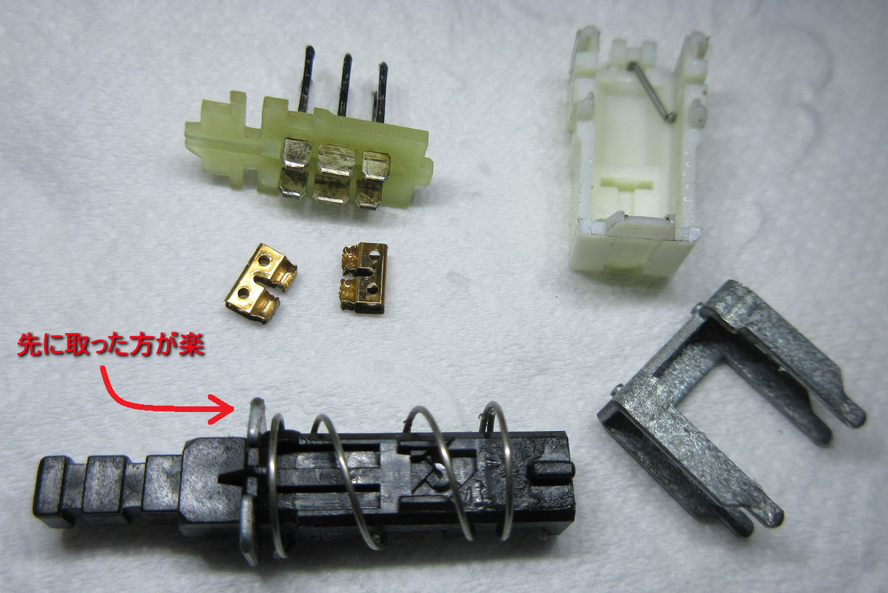 今まではバネ取るの面倒でチマチマ慎重に組み立ててたんだけど、素直に画像の矢印とこの金具広げて外した方が簡単だった(今更感
