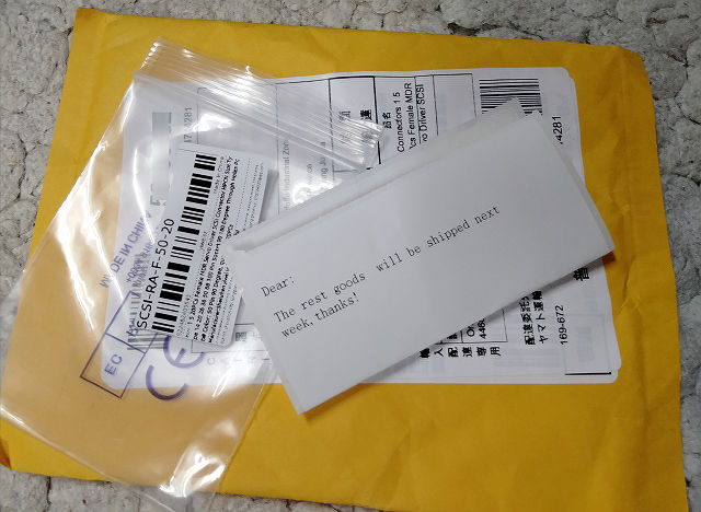 AliでSCSIコネクタ追加で買っとくかぁ~、とポチッた結果がこれ(封筒内に手紙だけw)