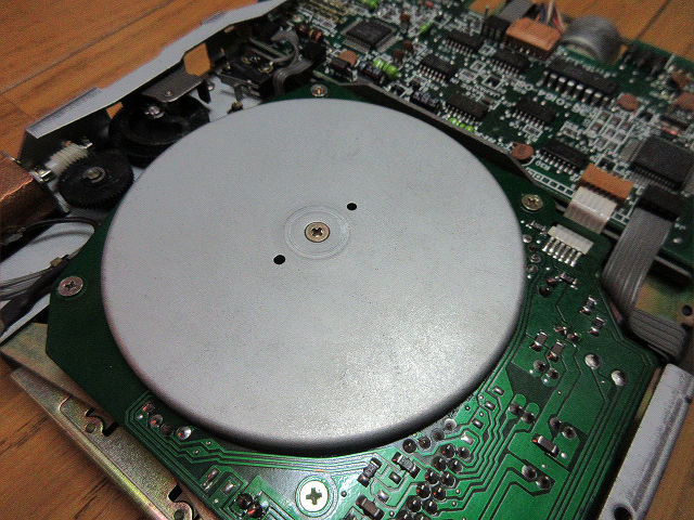 この円盤はコイルが入ってて所謂モーターなので、磁気的に弱くなってるのか、もしくはIC等がイカレテルのかはわからないけど、ディスクが勝手に 排出してしまう症状になったら円盤の動作を見た方がいいかもしれない