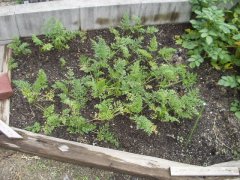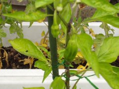 Goto Family Home Page - My Home Garden 家庭菜園1 さてさて、わが家の家庭菜園は順調に生育しているようです。ニンジンは葉が生い茂ってきました。地中でニンジンが大きく育っていることを祈るばかりです。 隣のジャガイモゾーンでは、葉の一部が黄色くなり始め、収穫の時期が近づいてきていることを アピールしています。 ![]() プランターのナスはようやく小さな実がつき始めました。まだ数センチといったところですが、 どこまで大きくなるか楽しみです。シシトウも1〜2個の実がつき始めました。 まだまだ小ぶりで試食するには気がひける大きさです。 ![]() ミニトマトは青い実がたわわになってきました。まだ色づいてはきていませんが、 大量に収穫できそうな予感です。実の重みで枝がへし折れてしまっている箇所もありました。 網を張ったり対策した方がいいのかも知れません。こんなに一気に実がなるとは まったくもって予想外でした。040605 ![]() 本日、いよいよ収穫、七輪焼きして食べてみました。 醤油をつけて、何とも言えない香ばしさ…。 至福のひとときを過ごさせていただきました。040613 ![]() 前のページ | 次のページ Copyrights (C) 2004 S.Goto All Rights Reserved. |