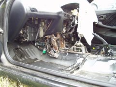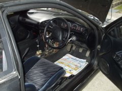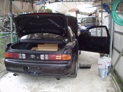 Goto Family Home Page - Enjoy Motor トレノ解体 ヤフーオークションで、解体車両を購入してしまいました。 ほとんど衝動買い。1万数千円で落札することができました。車両はごらんのとおりの101型トレノ。走行距離は約14万キロ。最上級グレードのGT-APEXですう。あっ、いやいや、この時代はスーパーチャージャーのGT-Zがありましたね。ボデーはブラックメタリックでなかなか精悍です。この時期の日本の自動車はバブルの最中の開発設計で、(今では信じられないほど)細部までお金がかけられています。私の所有する111型を見たときはここまでやるか!と思ったものです、原価低減。 自宅には保管スペースが確保できないため、家人にブーブー言われつつも、実家に置いておくことに。レンタルでキャリアカーを借りてきまして搬送しました。こっちの出費の方が結構痛かったかな。初めてキャリアカー扱いましたが、油圧スライドの架台はなかなか格好よいです(意味不明)。 ようやくトレノを下架して、シゲシゲと見渡してみました。ボデーは年式相応に各部かなり痛んでいます。特にボデー下部のはね石によると思われる塗装の剥がれが強烈です。リアスポイラー上部の塗装剥がれも進んでします。屋外保管されていたものと考えられますね。リアシート、その後方のトレイ部の日焼けも激しく進行しています。タイヤは純正の鉄っちん14インチホイールと5部山の195タイヤ。これはそのままカリブでも使えると思うのでラッキーですね。ラゲージランプのレンズ裏面に水滴が付着しているのが気になります。 室内も年式相応にへたってはいますが、致命的な欠落はなさそうです。各部作りはいいですねえ、さすがトヨタ車。シートは確か111型と互換性ある(らしい)ので交換してみようかなあ。エアコンもオートだし、オーディオはなんと6スピーカー。ツイータがドアミラー根元裏側の三角ガーニッシュ部に埋め込まれています。111カリブBZも、いちおうの最上級ですが、こっちの方がすべてに渡って1グレード上って感じだなあ。040214 そして1ヶ月以上が経ってしまいました。なかなか時間がとれないところが辛いのですが。 ちまちまと解体していくことにしましょう。エンジンルームは現状の手持ち工具では辛いので後回し。せっかく自走はできるので、なるだけしばらくは自走できる状態にはしておき、室内からバラしていきますかね。 まずはシート類を取り外し、センターコンソール、オーディオパネルへと進んでいきます。040322 さらに1ヶ月以上が経過して、ゴールデンウィークに1日だけ時間が取れたので、部品剥がしを続けます。このペースでは、エンジンを降ろせるのはいったいいつになるのか不安になってきてます。 ![]() 車は実家には置いてもらえず、近所の知り合いの空き地に置かれました。アンダーボデーにかかるほど新緑が生い茂ってきました。やぶ蚊も発生してきてます。内装関係を引き剥がし、ようやくシフトレバー周りが覗けるようになりました。シフトレバー部は錆びがひどく、錆び落としでも施したいところです。 ![]() ペダル周りにもたどり着きました。この後エンジンルーム側を整理して、必要部品の本格取り外しに移ります。 ![]() 取り外したシート、インパネ類の一部はヤフオクにかけることにしました。買い手がつくでしょうか、乞うご期待! 040430 Copyrights (C) 2004 S.Goto All Rights Reserved. |