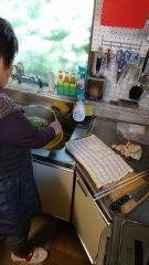 4.水切りした材料をさきほどのすり鉢の中へバサッと。醤油で適当に味付けして、タッパーに入れて保管。