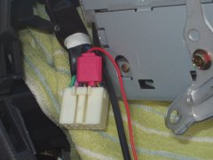 続けて、配線の処理ですが、電源は一番近いオーディオから分岐して引き込みました。付属のワンタッチコネクターで圧着します。