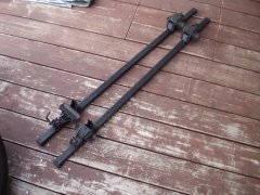 | ウィッシュ、ルーフキャリア装着 ウイッシュでスキーに行くことになりました。手持ちのルーフキャリアは、ルーフレール装着用。レールのないウィッシュにはそのままでは取付できません。