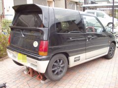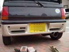 3月12日(土) こっそりと入手していた、メーカ不詳のデフ下直管タイプにマフラー交換実施。暖かくなってきたらやろうと思っていましたが、朝より衝動交換。しかし小雨まで振ってきて、コンディションは最悪に…。ジャッキ2連でお尻を上げて、馬をかませてもぐりました。案の定、ボルトが硬くて緩まず、CRCを吹き付けては、トンカチで叩きまくりました。吹きっさらしの庭先作業で凍えそうになり、通行人の皆様のさらに凍えそうな冷たい視線。ようやくボルトが外れたら、今度はマフラー本体が知恵の輪状態で抜けない! ジャッキを架け直して、どうにかこうにか取れてくれました。