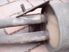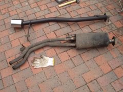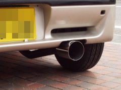 外した純正マフラーですが、腐食が激しく、溶接部がボロボロ崩れてきていました。穴のあく寸前のような状態。新マフラーの取付は、さすがデフ下、超簡単作業。あっという間に90φの精悍なリアビューが実現しました。さて走行インプレッション。音はサイレンサーは残しての後部交換ですので、とんでもない爆音にはならず一安心。それなりに音量アップしましたが。走行の力強さも、気持ちアップしましたかね。