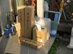 | わが家のワークス記録簿2006 3月5日 今年も早や3月。このところ、仕事に追いまくられて、ワークスで戯れることは、すっかり御無沙汰。 今日は、子供たち&母親が、子供会の行事で不在なのをいいことに、天気もいいし、昨年来から買い込んでいた、カヤバのショックでも組んでみるか、と思い立ちました。数ヶ月ウッドデッキ上に放りっぱなしで、このままだと雨風に朽ち果ててしまいそう。さて、素人&体力のない私に1日で組み上げることができるのか!? でないと、明日の出勤の足が…。