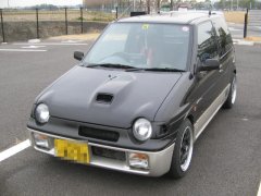 昨年入手した、オフセット0mmは、それこそフェンダーを切り飛ばさないと納めることが不可能でした。さすがにそこまでの大改造をやる根性はなく、オフセットそこそこのものをフロントだけ履かせて、リアは引っ張り、オフセット0でいく、という作戦。ヤフオクで安価品が出品されるのを、虎視眈々狙っておりました。ようやく、オフセット42の114.3、黒の出品を発見。なんとか落札してフロントに納めたのが現状です。165/55を流用したので、ちょっとはみ出し気味ではありますが、ひいき目のツライチということで、格好はかなり精悍になったと自己満足しています。