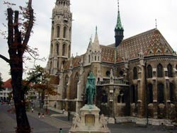 漁夫の砦 1890年から15年の歳月をかけて建設された.ネオロマネスク様式の塔を持つこの建物はシュウレフ・フリギスの建設によるものだが実際に戦いの砦として使われたことがない。名前の由来は城壁のこの部分をドナウ川の魚師組合が伝統的に守ってきたと言う説などさまざま。 |