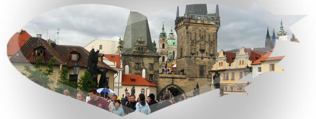 | ヴルタヴァ川西岸の小高い丘の上に立つプラハ城は、世界で最も最大規模のお城である。現在は博物館や、美術館等に変わり、大統領執務室に置かれている。 | ヴィルタヴァ川に架かるプラハ最古の橋カルレ橋です。全長520m、幅約10m両脇には絵や写真を売る人たちが沢山います。橋の両欄干には全部で30体の聖人像が立っています |