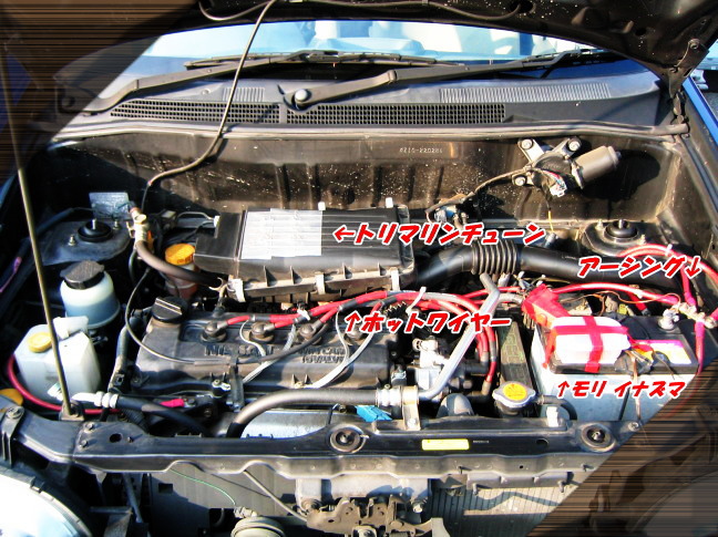 | ・トルマリンチューン | トルマリン原石と、トルマリンパッチ(100円SHOP)を貼り、その上から銅テープで保護。さらにアルミテープで防錆加工。 エアクリの後ろに位置するように装着しました。何となくエンジンの回転が軽くなったような印象を受けました。意外と馬鹿に出来ないのかもしれません。 費用:1台分、約500円程度 |