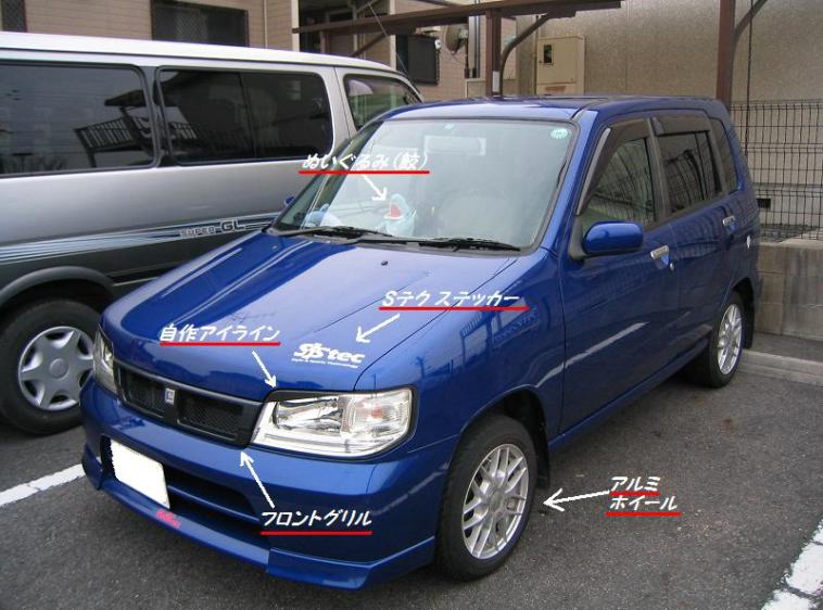 | 「フロントグリル」 ヤフオクにて¥1,560にて購入(白色だった) カーボン調に塗装するのに¥1,3000 他のCUBE との差別化をはかりたくて 純正グリルと交換しました。 なんか不思議な顔になってしまったような 気がするのですが、それなりに満足です。 |