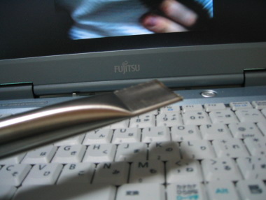 ↑万力で潰したパイプの端