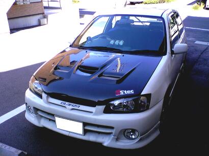 | 「炭ボン導入」 オークションにでていた物にノリで入札したら いつのまにか落札してしまいました(^-^; 日曜の朝に現物が届き、遊びに来ていた 大学時代の友人と試行錯誤しながら 取り付けをしました!ボンネットを閉めるのに やや苦労しましたが、まぁ大丈夫でしょう・・・? 軽量化の恩恵はどれほどかと期待していましたが、 何となく、ノーズの入りが良くなったような程度で 実際のところ、あまり著明には実感できませんでした(涙) でも、僕が鈍いだけで、たぶん効いているはず。 一方で、見た目は著明に変わっちゃいました!!! いかついルックスになり、ちょっと、悪そうに見えます。 実際はとっても大人しいクルマなのになぁ・・・汗 |